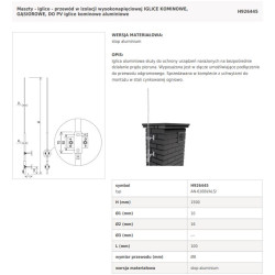 Iglica kominowa H=1500mm,fi10/16 z uchwytem L=100mm/OG/