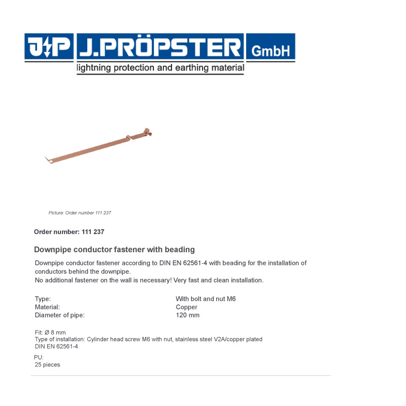 Uchwyt odgromowy miedziany na rurę spustową fi 120mm