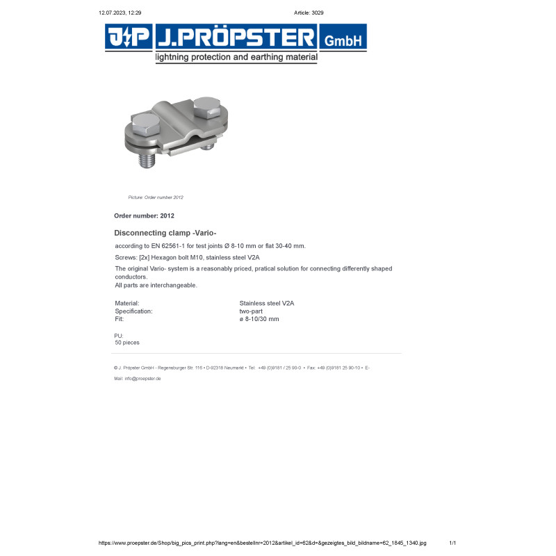 Zacisk rozłączający -Vario- zgodnie z EN 62561-1 dla złączy kontrolnych pod fi 8-10 mm lub płaskich 30-40 mm.